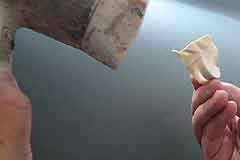 Applying pressure with my fingers, I gradually bend the resin into shape. Be very careful here, or you'll break the piece! If you don't feel you're making progress, heat more. |