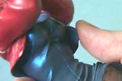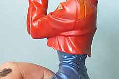 The left arm is the killer problem in this kit. There's a very wide gap between her left chest and left arm. The white area you see is the gap - after a LOT of hassles - carving, bending, etc. No way would it fit completely.So it's time for Liquitex Acrylic Modeling Paste. It's a very good filler and I use it exclusively for puttying after painting, because it's water-soluble and will not damage your paint job. |