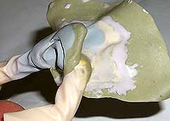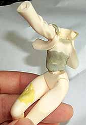 The lowerbody then needs to be fitted to the top before I proceed further. I applied vaseline on the newly created body, and applied Mori Mori surrounding the bottom of the upper body. When dried, the upper body can be pulled apart and the Mori Mori will form a shape that fits the upper body perfectly. |
