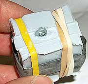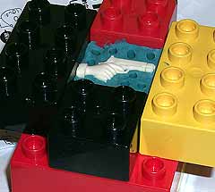 ... but it's not true to the episode, and the difference in bullet counts makes very little sense for an akimbo configuration. The evil voices (you know who you are ;) ) suggested casting the automatic and eventually thinking about it too much I decided to just try it. Thanks to a tip from a HK newsgroup, I got some cheap Lego blocks and build the casting chamber that way. Surrounding the piece with some Klean Klay the top part of the mold is ready to be cast. |