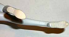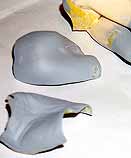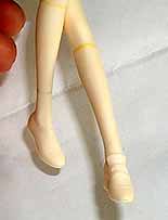Here I'm using the back of my xacto knife to remove materials off the area below the calf. This is required because I'm removing from the area in contact with the socks, the diameter of the calf above this area are generally larger. I'm also trying to induce a little curvature on the calf, I thought the original kit was poor in this aspect, which was why her legs were somewhat rigid. |