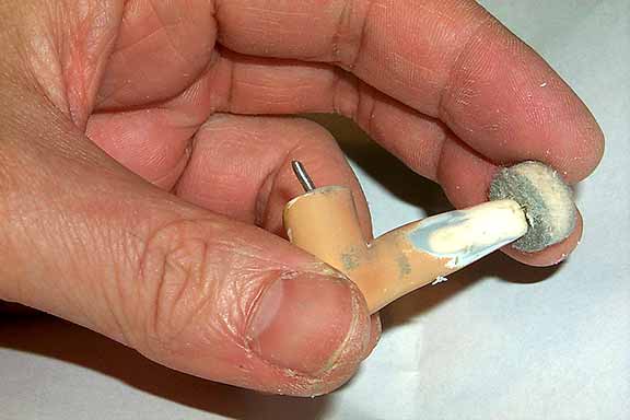 During sanding, it is easy to remove materials off the edges that are supposed to remain. Here I'm protecting the edge of the junction with the sock with a disc. |