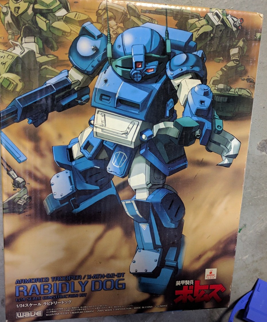 My first Yahoo Japan auction came this rabidly dog from votoms. This apparently was sold through direct sales from be-j,Waves stores, circa 2011-2. For whatever read RD was not a popular design and there were few kits of it in resin form, whereas Scopedog was a hit. In Votoms Chirico rode through the Quent desert… Continue reading Wave 1/24 Rabidly Dog