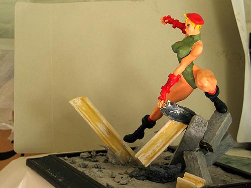 … an update! I’m working on the flying Cammy-chan. I’m always bothered by the I-beam she’s using as support, and I think the only diorama that’d fit is something like a construction site. So here we go. The idea is to have her jumping over some collapsing structures, and she just avoided the danger of… Continue reading As advertised…